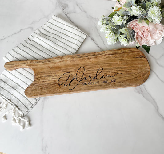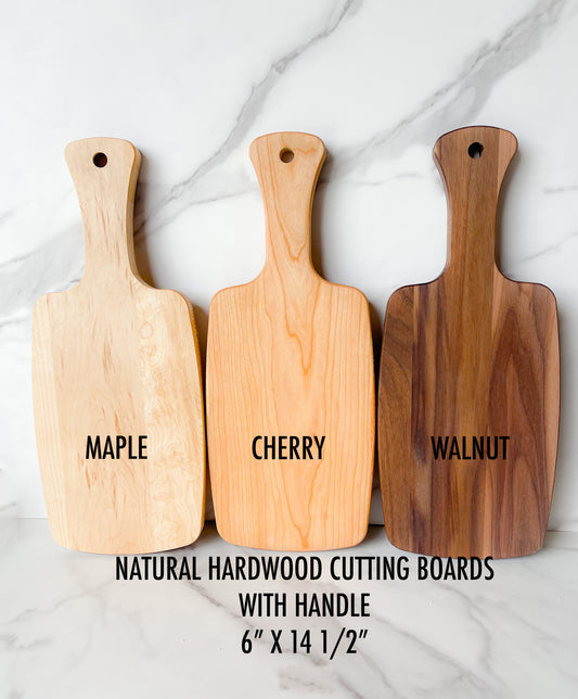 Handwritten Recipe Cutting Board - Small hardwood board with handle